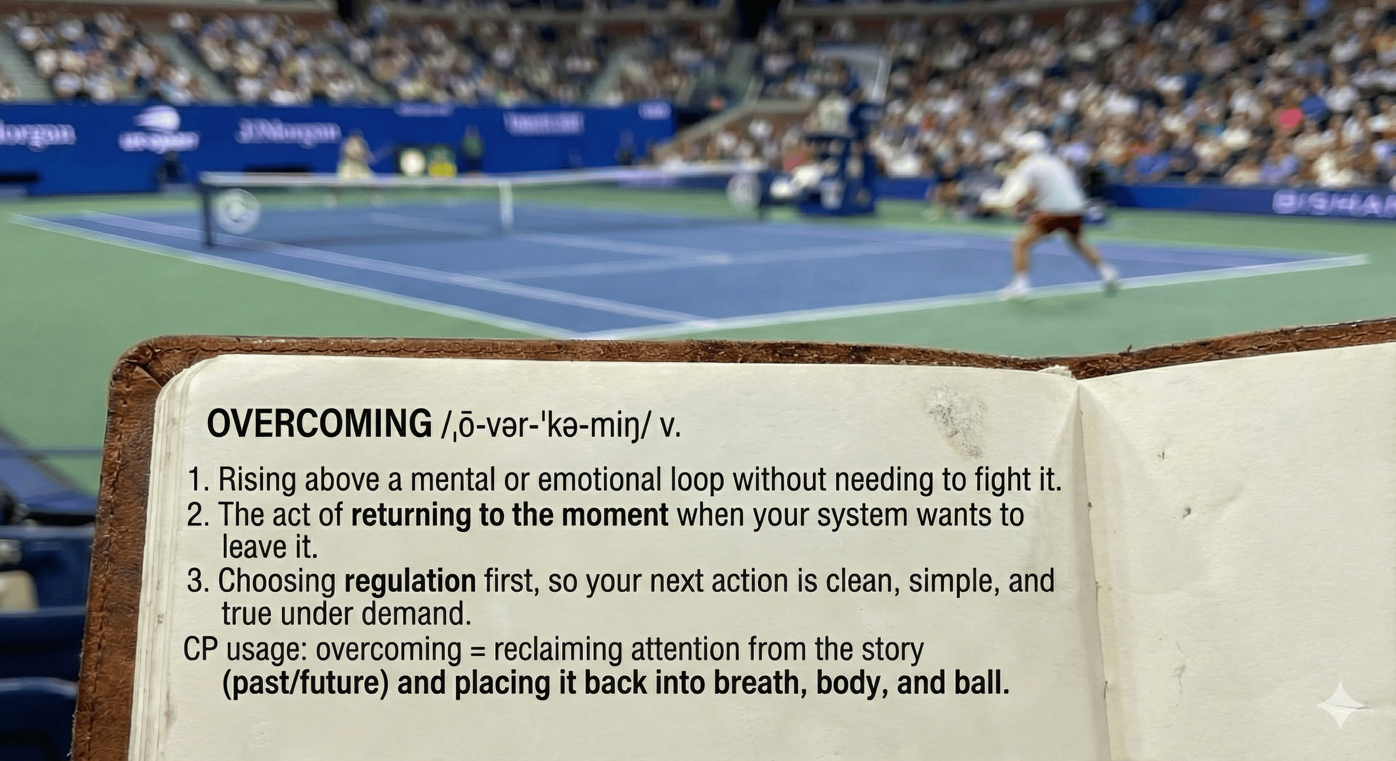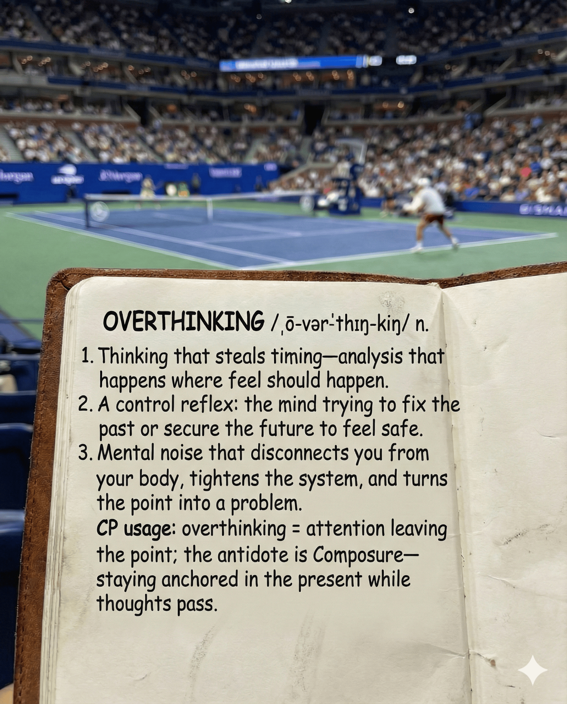 That’s because overthinking isn’t high awareness—it’s a survival reflex. It’s the mind trying to protect you from uncertainty by living in time: fixing what happened, controlling what might happen, and labeling the moment so it feels familiar. But tennis is a game of the living present. The point doesn’t care about your conclusions. The ball doesn’t wait for your analysis. And the Zone doesn’t show up when you’ve finally “figured it out”—it shows up when interference drops away and you’re fully here.